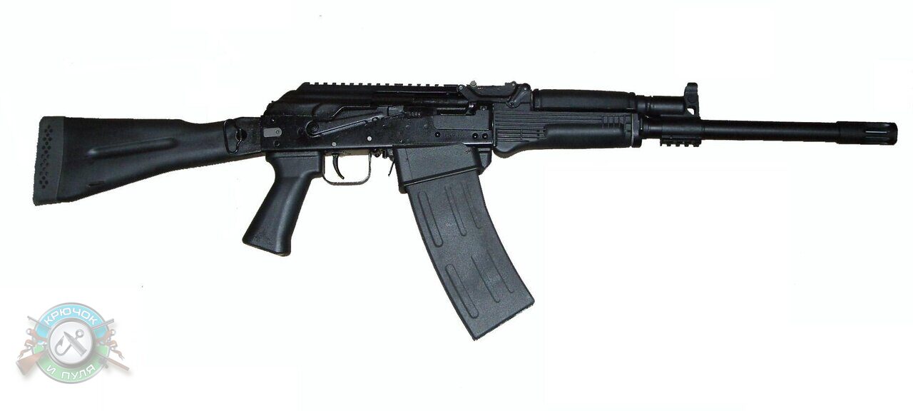 «Сайга-12К», укороченное автоматическое ружьё — «гладкоствольный автоматический карабин». Приклад и пистолетная рукоятка позаимствованы у автомата Калашникова. В конструкцию введён механизм блокировки, который не позволяет снять оружие с предохранителя до тех пор, пока не будет откинут приклад. Длина ствола 430 мм. Прицельные приспособления охотничьего или «автоматного» типа. Имеет возможность вести стрельбу очередями.